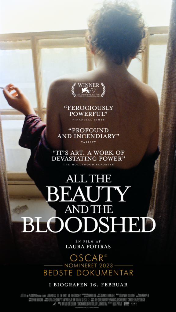 ‘All The Beauty And The Bloodshed’ er instrueret af Laura Poitras, der også stod bag den Oscarvindende dokumentar ‘Citizenfour’ om Edward Snowden. Filmen vandt Guldløven i Venedig i 2022 og den er nomineret til en Oscar for ‘Bedste Dokumentarfilm’ 2023.
