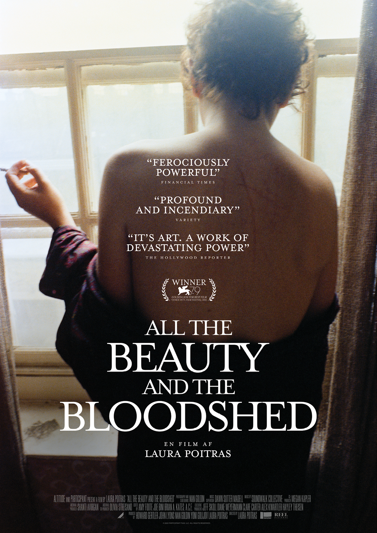 Mere end 100.000 amerikanere dør hvert år af en overdosis af narkotika eller medicin – ca. 75.000 af tilfældene er relateret til afhængighedsskabende smertestillende medicin, de såkaldte ‘opioids’. Årets Guldløvevinder tegner et intimt og mageløst portræt af den kompromisløse fotokunstner Nan Goldin, der i dag kæmper aktivistisk for at medicinal-dynastiet The Sackler Family skal drages til ansvar for sin rolle i opioid-epidemien. Goldin brød igennem med sine hudløst autentiske fotografier af homoseksuelle og transkønnede subkulturer i Boston og New York i 70’erne og 80’erne og udstilles i dag på verdens førende museer som Guggenheim og Louvre. Museer som modtager klækkelige donationer fra Sackler-familien… Som én del smerteligt personlig og kunstnerisk øjenåbner om Goldins rejse fra en utryg barndom til et grænseløst kunstnerliv og én del fluen-på-væggen-skildring af Goldins indædte kamp mod Sackler-familien, formår filmen at forene en dybt personlig beretning og et altødelæggende samfundsproblem i en bevægende og menneskelig historie om familierelationer, misbrug, kærlighed og kunst.