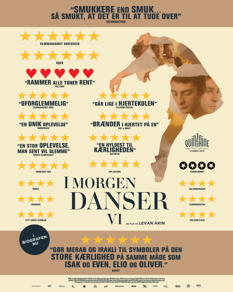 I MORGEN DANSER VI havde verdenspremiere i Directors’ Fortnight-sektionen på Cannes Film Festival 2019. Den er udvalgt til at være Sveriges Oscar-kandidat i kategorien ‘Best International Feature’ ved Oscaruddelingen 2020. Hovedrolleindehaver Levan Gelbakhiani er nomineret til en European Film Award for sin præstation som den unge danser Merab.
