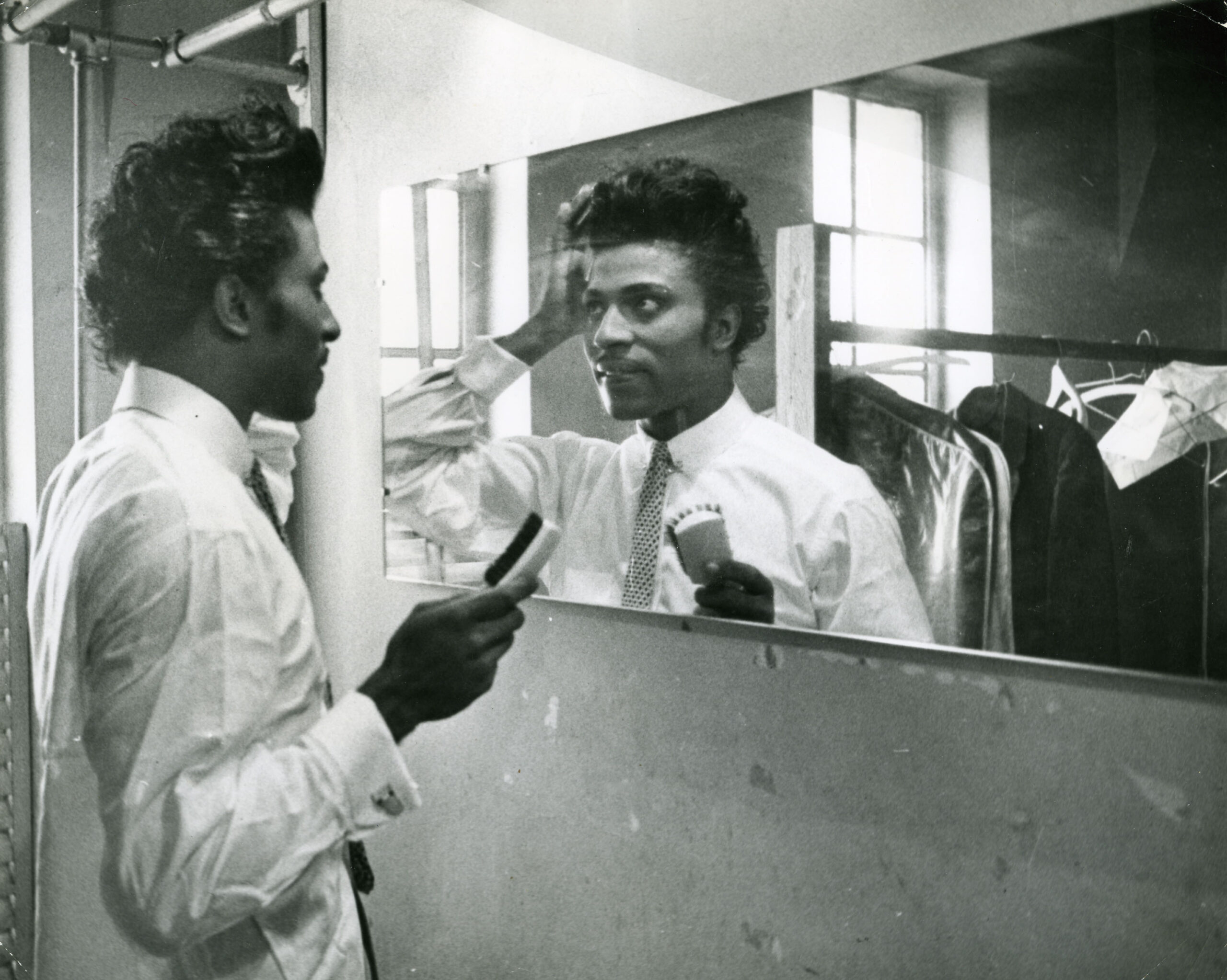 A833KN LITTLE RICHARD – US rock musician preparing to go on stage at Wrigley Field, California, in September 1956