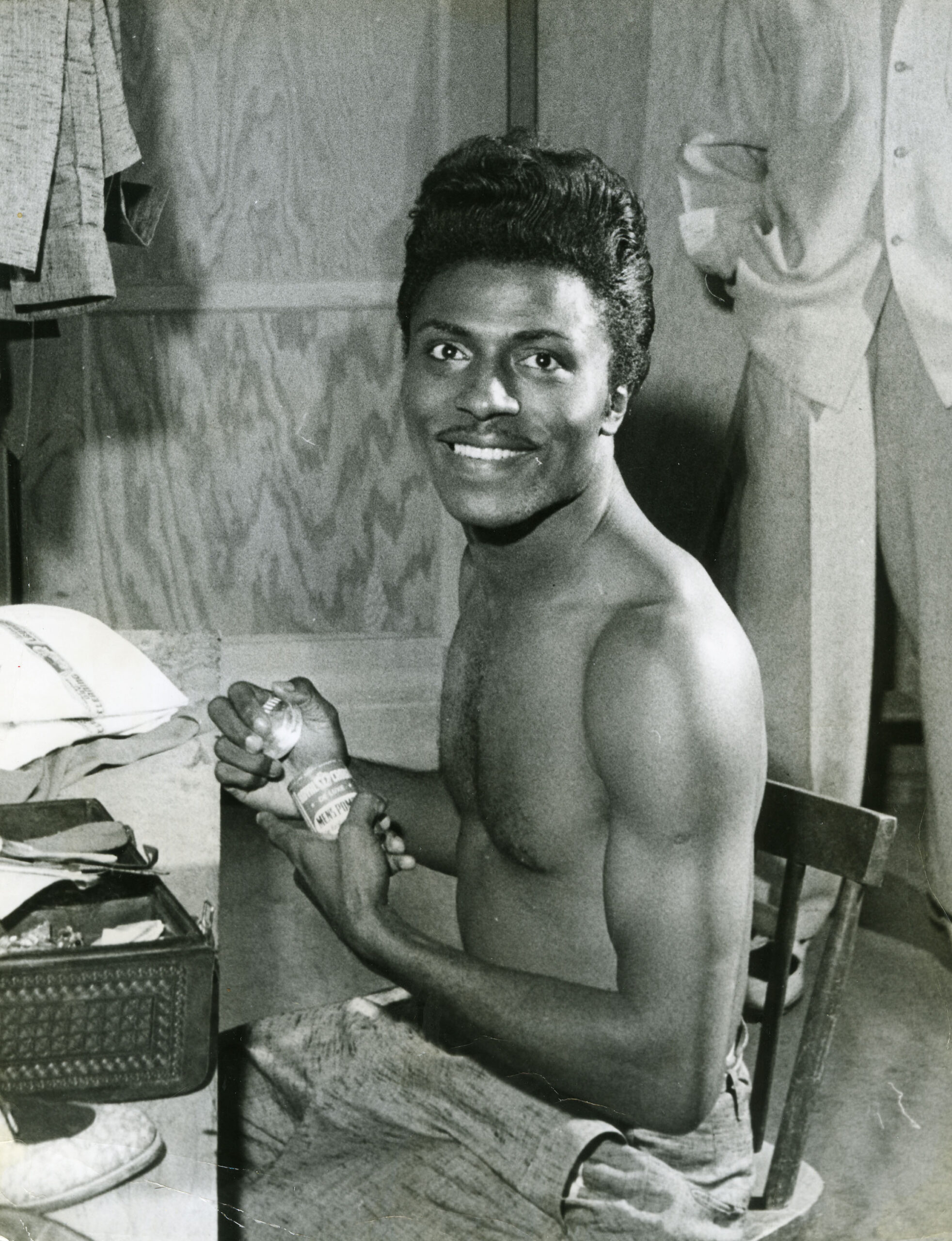 A833KN LITTLE RICHARD – US rock musician preparing to go on stage at Wrigley Field, California, in September 1956