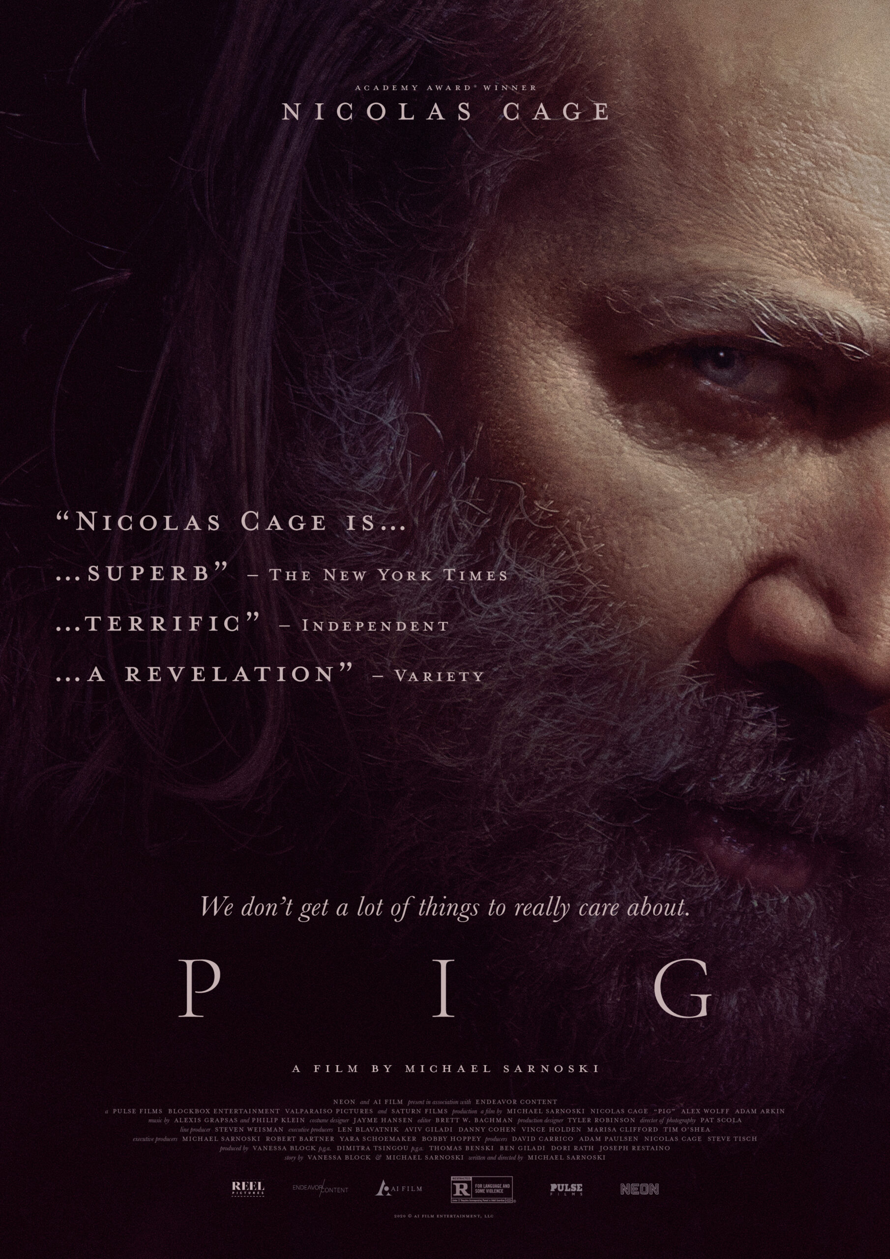 ”Cage er en åbenbaring”, skrev Variety ved den amerikanske premiere. Og med 97% Fresh-rating på Rotten Tomatoes, ’Must See’-status på Metacritic og en Top 10-åbning på den amerikanske boxoffice-liste er PIG et uomgængeligt comeback for Nicolas Cage. Filmen er pt. nomineret til en Gotham Award for Bedste Film og herhjemme har Filmmagasinet Ekko kvitteret med 5 stjerner i deres seneste magasin: “Pig er en film med hjerte, og den bliver siddende i kroppen”.